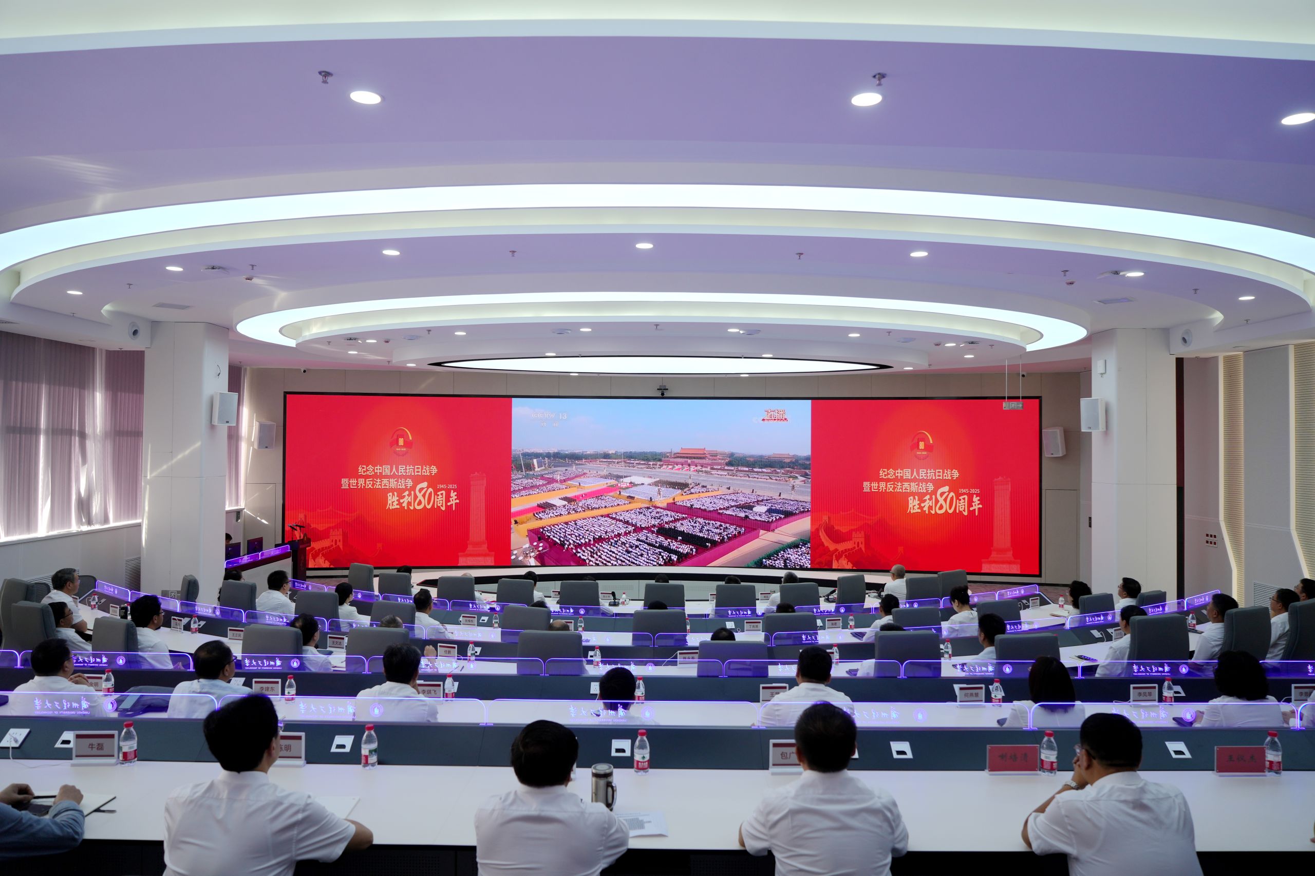 学校领导,党政管理机构、教辅机构、直属机构、科研机构主要负责同志一同在兰工坪校区数智校园运行中心收看大会直播;全体新生、各学院师生通过多种方式观看大会,共同见证这一庄严时刻,以最崇高的敬意纪念这场伟大胜利。大家一致表示,伟大的中国人民抗日战争,是中国人民近代以来争取独立自由史册上可歌可泣的一页,是中华民族历史发展进程中饱经沧桑的一章。要铭记历史、缅怀先烈、珍爱和平、开创未来,从抗日战争的伟大胜利中汲取以中国式现代化全面推进强国建设、民族复兴伟业的智慧和力量。