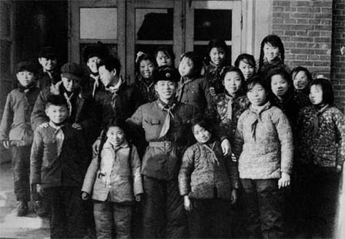 雷锋和抚顺市建设街小学生合影
