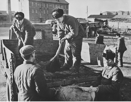 雷锋和战友清理车厢