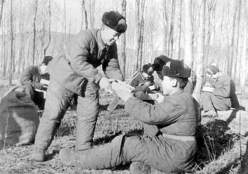 雷锋帮助战友李新田缝被褥