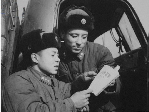 雷锋在辅导乔安山学习《毛泽东选集》
