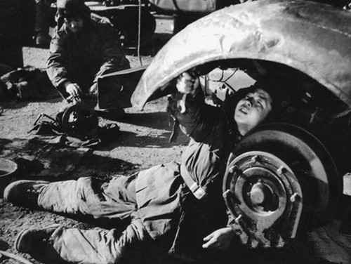 雷锋正在修理汽车