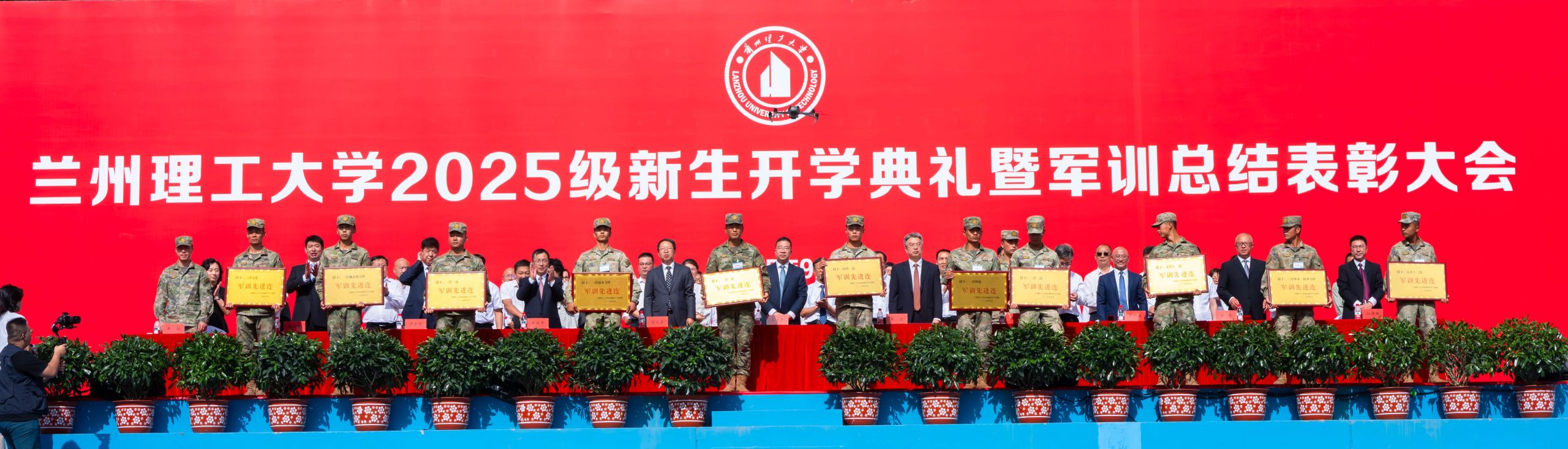 与会领导为军训期间涌现的先进集体与个人颁发奖牌证书。