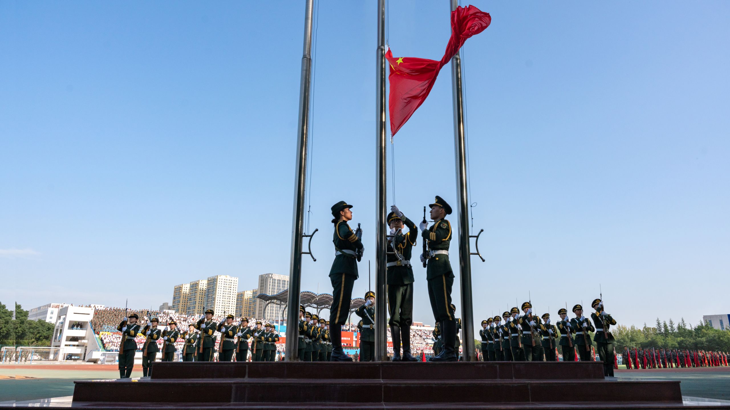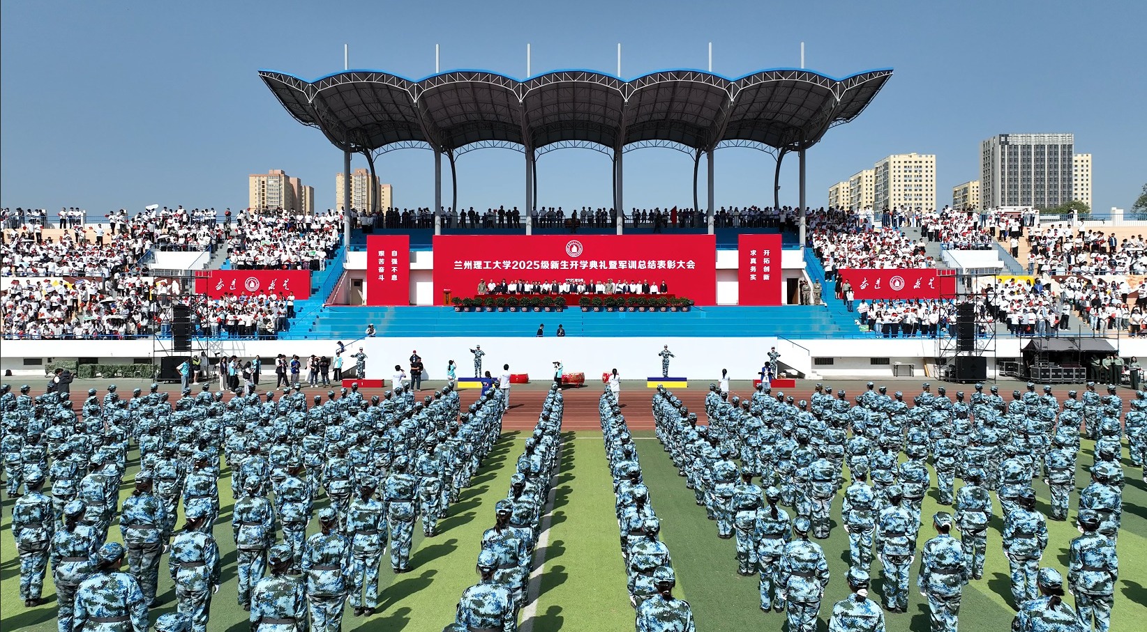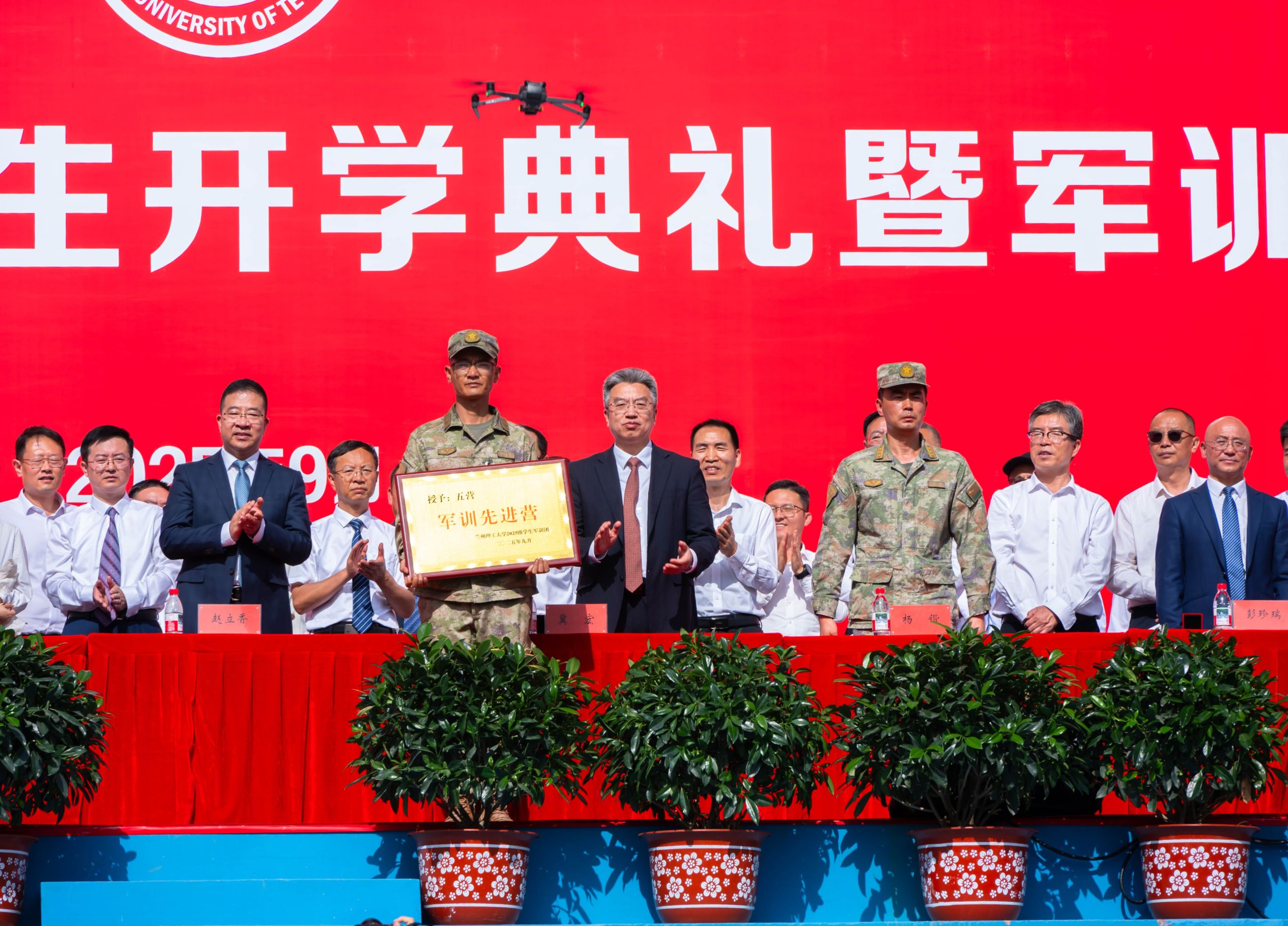 9月14日上午,万事平台登录2025级新生开学典礼暨军训总结表彰大会在彭家坪校区田径场隆重举行。全体在校校领导、承训部队相关负责人、学校相关单位负责人、教师代表和8500余名2025级新生共同参加。